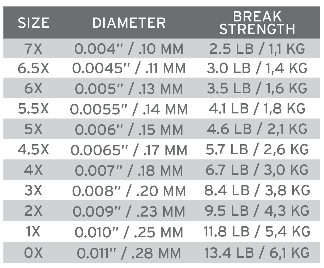 Absolute-fortommer og spisser er laget med proprietære kopolymerblandinger som er utviklet for å redusere vannabsorpsjon drastisk, samtidig som de opprettholder optimal smidighet for høy knutestyrke. Absolute-fluorkarbonfortommer og spisser har 15 % høyere våtknutestyrke sammenlignet med vårt tidligere materiale og har utrolig klarhet og slitestyrke.