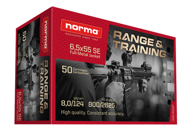 Norma Trainer er tilbake, nå med nytt navn og ny forpakning! Utseende på esken har fått en overhaling, men innholdet er fortsatt det samme. Norma Range & Training er produsert i Sverige og holder høy kvalitet for treningsammunisjon i denne prisklassen. Leveres i 6,5x55, 308 Win og 30-06 og kan kjøpes hos din lokale våpenforhandler. Nå er ikke lenger pris en unnskyldning for litt ekstra trening før høstens storviltjakt.