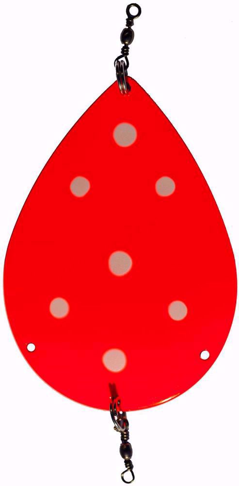 Denne blinken er håndlaget av Odd Wollbakk for å lure de store røyene. Den har hull for montering av opp til tre fortommer med kroker og fluer. Odd selv anbefaler å knyte fast en bit ulltråd dyppet i luktstoff. Denne kan absolutt anbefales for fjellfiske etter storrøya.